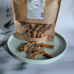 Een knapperig snackie.  Door het drogingsproces zijn de botjes bros geworden waardoor ze makkelijker verteerbaar zijn  voor je hond. Hypo allergeen!  Inhoud 200 gram Ruw eiwit 44,0%, Ruw vet 26.9%, Ruwe As 20,31%, Ruwe Celstof...