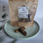 Een heerlijk crunchy tussendoortje gemaakt van forel, kabeljauw en algen.