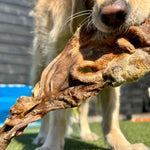 Een supergrote kauwsnack voor je hond. Hier is ie wel even druk mee. 100% natuurlijk 100% paard.