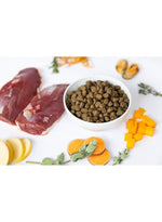 75% Vers Eendenvlees, 20% zoete aardappel, 3% gezondheidsmix: (banaan (5982 mg/kg), artisjok (4486 mg/kg), cichorei (4813 mg/kg), luzerne (2393 mg/kg), appels (2094 mg/kg), pompoen (1794 mg/kg), veenbessen (1495 mg/kg), groenlipmossel (1346 mg/kg), groene thee (1196 mg/kg), rozemarijn (1047 mg/kg), tijm (897 mg/kg), oregano (748 mg/kg), mariadistel (269 mg/kg), spirulina (239 mg/kg), olijfolie (209 mg/kg), yucca, cordyceps (179 mg/kg), shiitake, paardebloem, gember, kurkuma), 1% forelolie, glucosamine (1000 mg/kg), chondroïtine (850 mg/kg), msm (650 mg/kg).