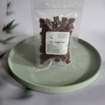 Deze kleine vleesblokjes zijn perfect geschikt voor de training door hun formaat.  100% natuurlijke vlees trainers. Inhoud 100 gram Analyse: Eiwit: 35,0%, Vet: 4,0%, As: 5,0%, Vezel: 0,5%, Vocht: 23,0%