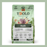75% Vers Eendenvlees, 20% zoete aardappel, 3% gezondheidsmix: (banaan (5982 mg/kg), artisjok (4486 mg/kg), cichorei (4813 mg/kg), luzerne (2393 mg/kg), appels (2094 mg/kg), pompoen (1794 mg/kg), veenbessen (1495 mg/kg), groenlipmossel (1346 mg/kg), groene thee (1196 mg/kg), rozemarijn (1047 mg/kg), tijm (897 mg/kg), oregano (748 mg/kg), mariadistel (269 mg/kg), spirulina (239 mg/kg), olijfolie (209 mg/kg), yucca, cordyceps (179 mg/kg), shiitake, paardebloem, gember, kurkuma), 1% forelolie, glucosamine (1000 mg/kg), chondroïtine (850 mg/kg), msm (650 mg/kg).